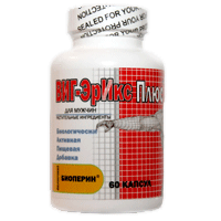 С добавлением биоперина, таблетки ВИГ-ЭрИкс Плюс эффективно и быстро абсорбируются системой пищеварения.